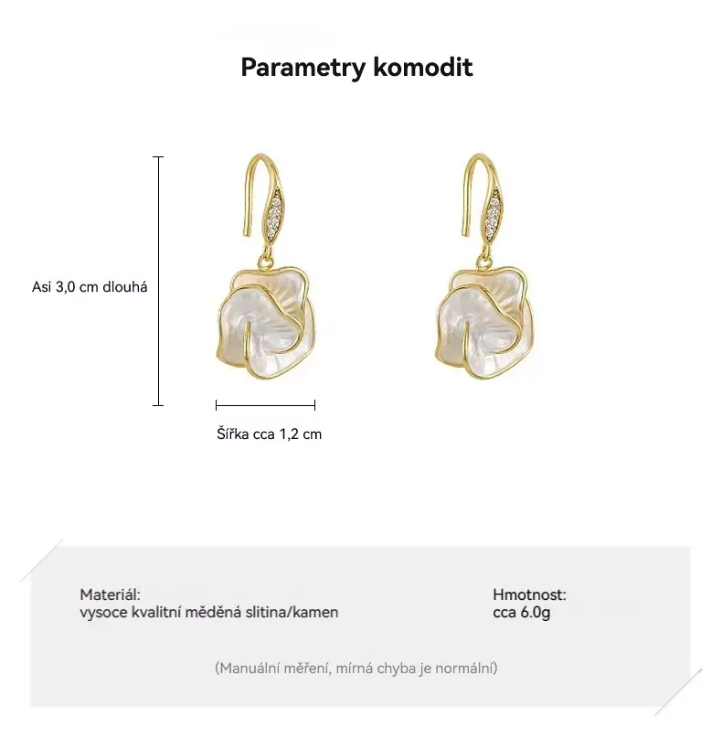 تضيف الحواف الذهبية لمسة فاخرة تعزز من تفاصيل الزهرة وتبرز جمالها، مما يمنح الأقراط طابعاً كلاسيكياً راقياً يشبه المجوهرات الفاخرة.