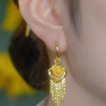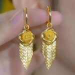 يجسد التصميم جمال الزهور المتفتحة من خلال تفاصيل دقيقة تمنح الأقراط مظهراً فنياً فريداً. يعكس كل جزء الضوء بطريقة أنيقة ليخلق تأثيراً بصرياً جذاباً يجعل هذه القطعة مثالية للمناسبات الخاصة والإطلالات الراقية.