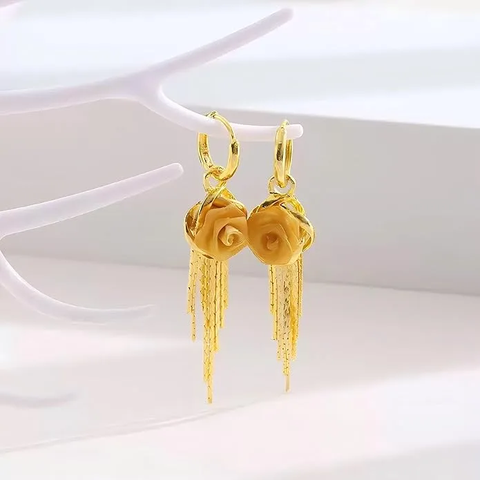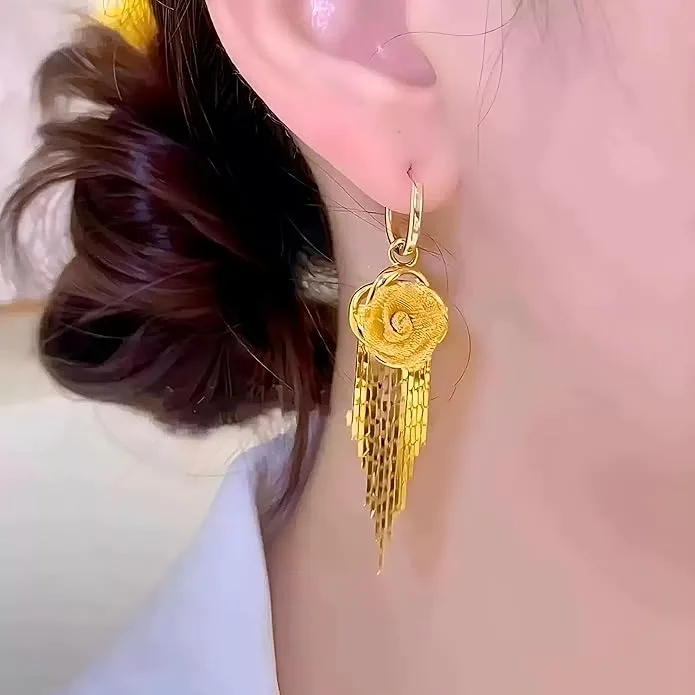 قطعة مجوهرات أنيقة تضيف لمسة من الفخامة والرقي إلى إطلالتك. تتميز هذه الأقراط بتصميم مستوحى من جمال الزهور المتفتحة، حيث تنعكس الإضاءة على تفاصيلها المنحوتة بدقة لتمنحك بريقاً جذاباً يلفت الأنظار. إنها الإكسسوار المثالي للمرأة التي تبحث عن الأناقة الهادئة والتأثير المميز في كل مناسبة.